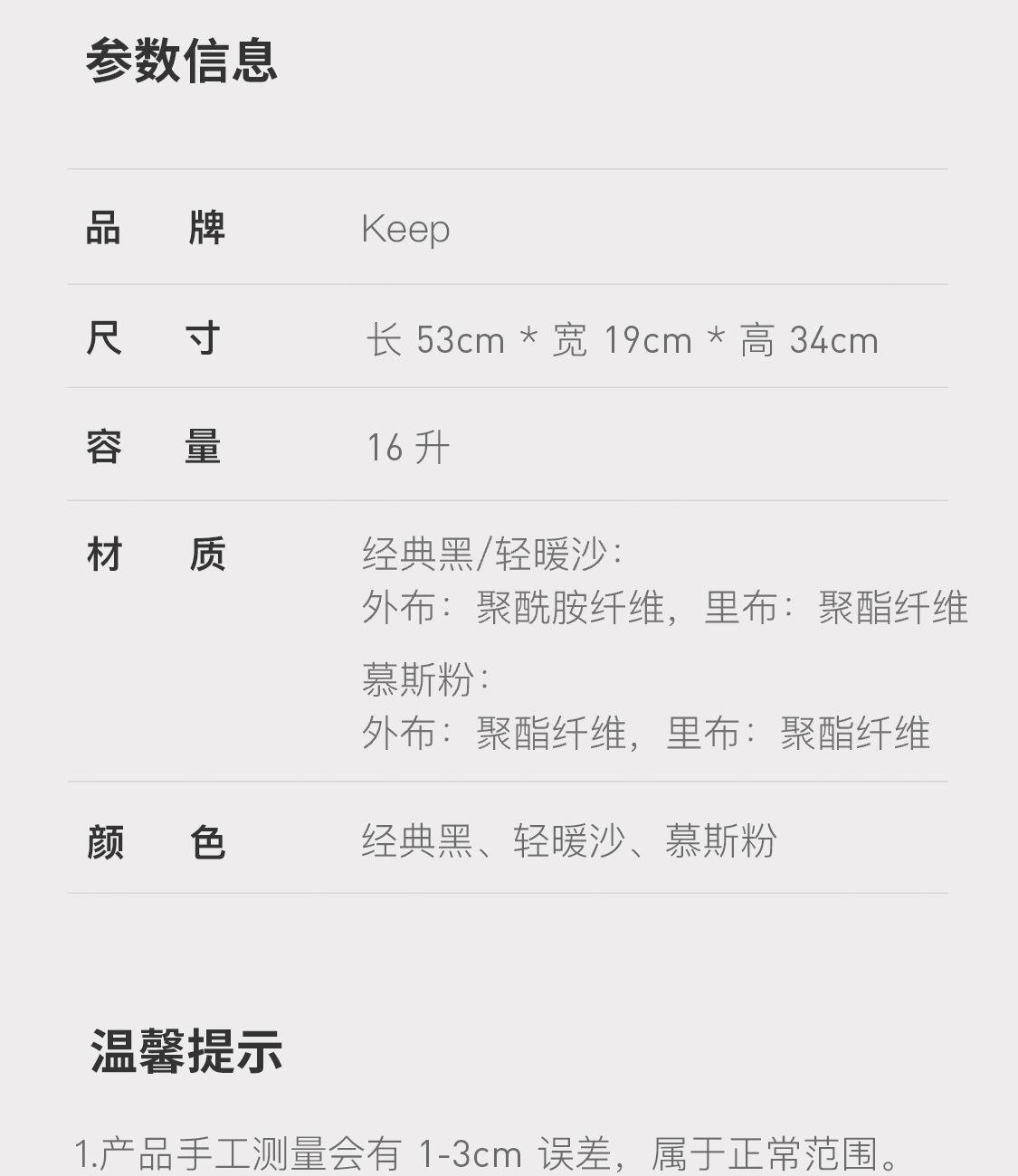 材質(zhì):經(jīng)典黑/輕暖沙:外布:聚酰胺纖維,里布:聚酯纖維